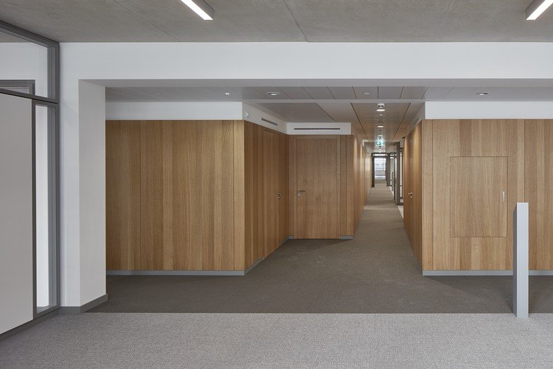 2.800 m² mikroperforierte, akustische Eiche- und Mela-Wandverkleidung