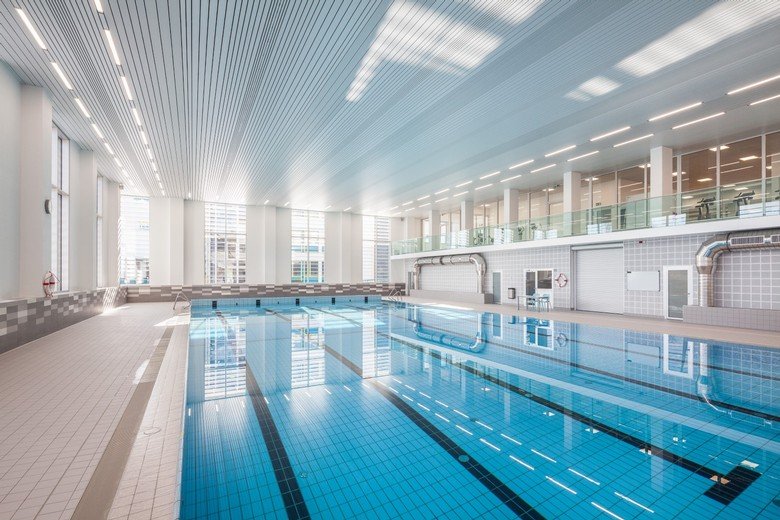 740 m² Faux-plafond lamellé en Aluminium (partiellement perforé) dans la piscine