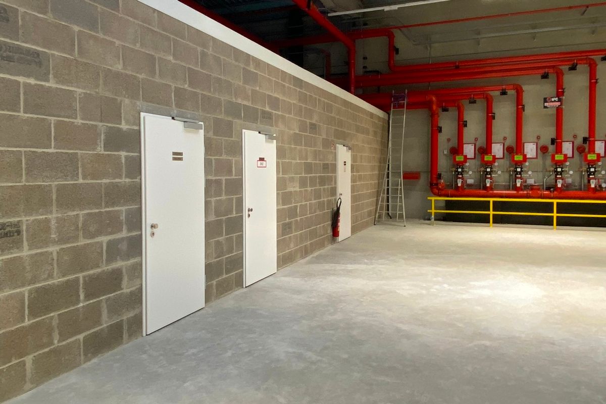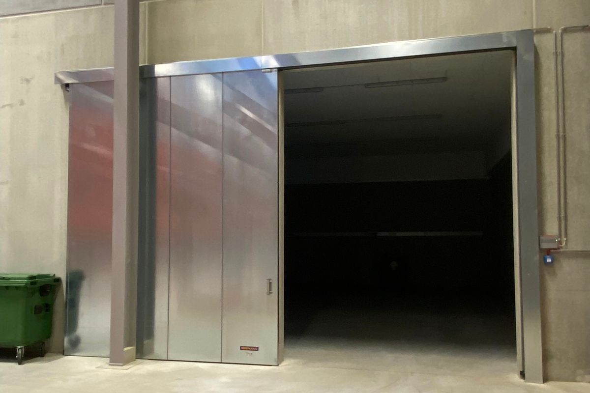 4 feuerbeständige Schiebetüren, 4 m hoch und 3 m breit.