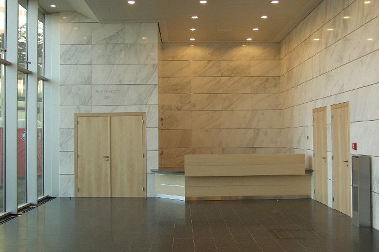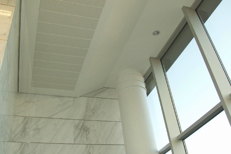 8.700 m² Plafonds réfrigérants à panneaux métalliques, système développé spécialement pour ce projet, y inclus tuyauterie interne
